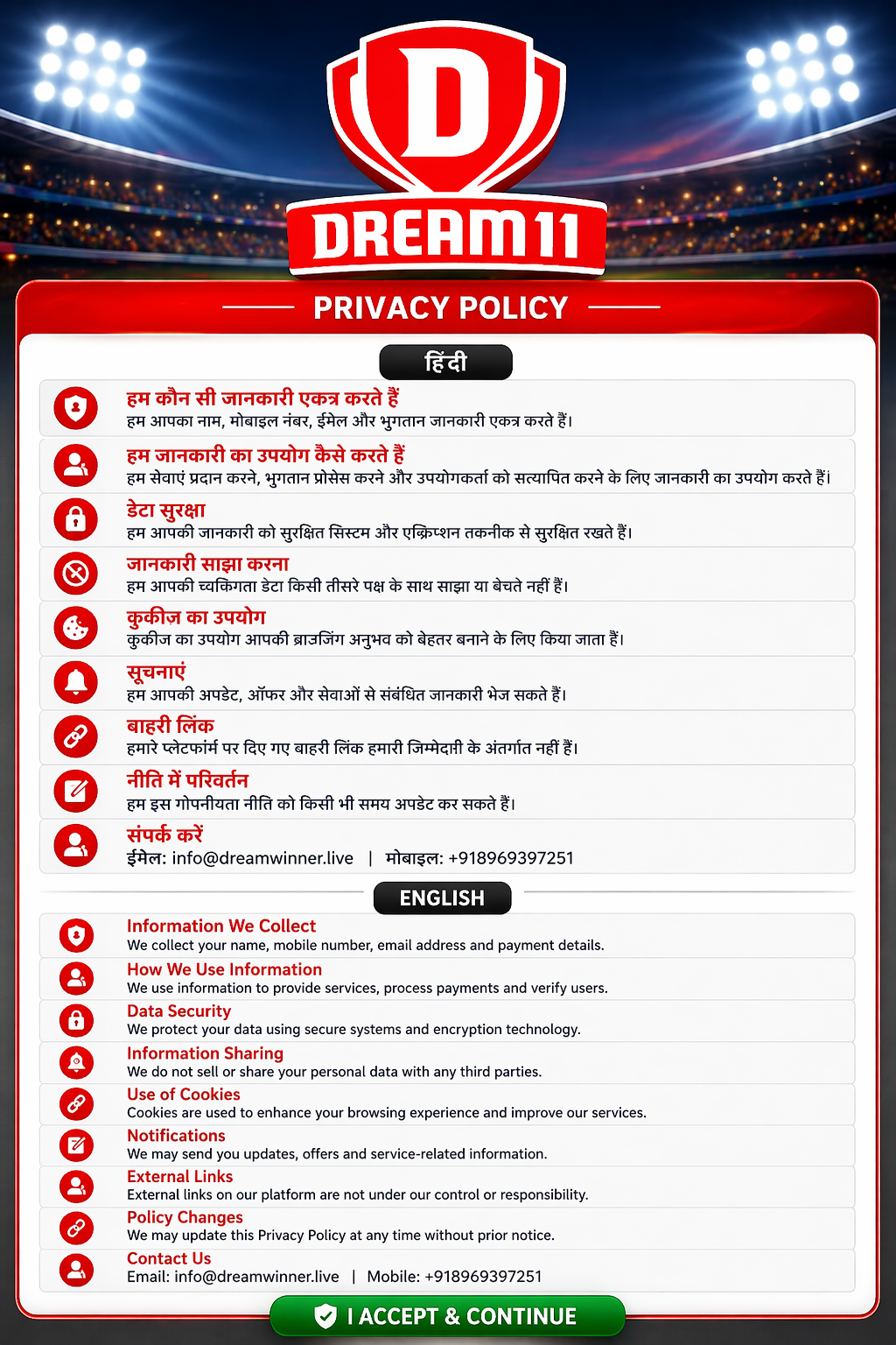 ЁЯПП DREAM 11 - TERMS & CONDITIONS